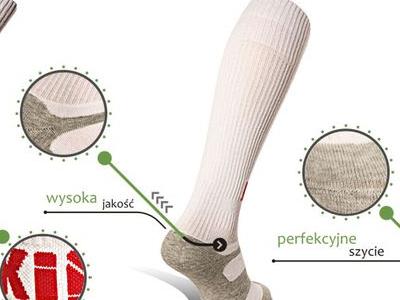 W naszej ofercie znajdziecie Państwo skarpety przystosowane dla potrzeb takich dyscyplin sportowych jak kolarstwo, siatkówka, koszykówka jak i tradycyjne skarpety sportowe typu „tenis”. Użyte do ich produkcji surowce takie jak: bawełna czesankowa oraz elastan są najwyżej jakości. Dobrze dobrany surowiec, wyprofilowana stopa, płaski szew oraz odpowiednio dobrany ściągacz zapewniają bardzo wysoki komfort użytkowania. Komputerowa technologia tworzenia produktu pozwala na zastosowanie szerokiej kolorystyki i umieszczenie różnorodnych grafik na powierzchni wyrobu.